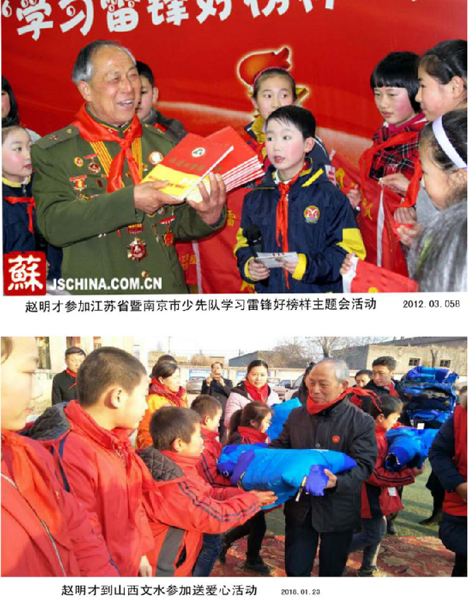 (1)1956年3月入伍到原沈陽軍區(qū)工兵七團(tuán),先后任排長、指導(dǎo)員、教導(dǎo)員、團(tuán)副政委和縣人武部政委等職,在1960年11月,趙明才前輩與雷鋒同時(shí)出席原沈陽軍區(qū)工程兵連隊(duì)政治工作會議,并雙雙被樹為標(biāo)兵