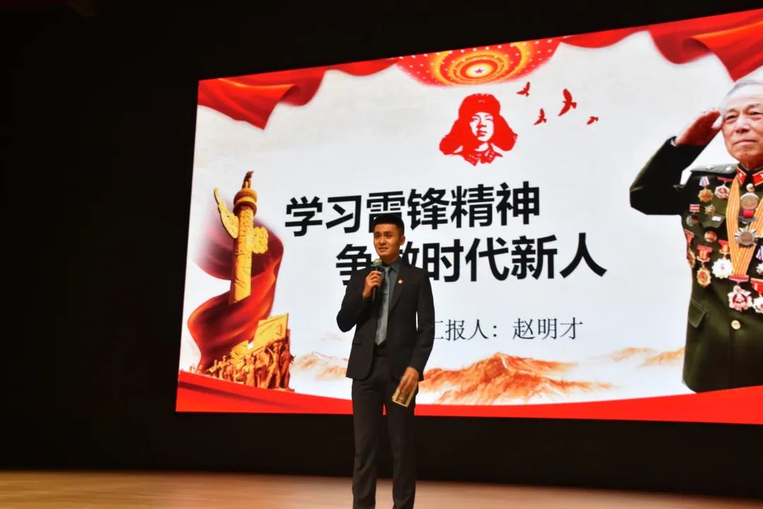 唐瀚老師演唱了一首《把一切獻(xiàn)給黨》,激昂有力的聲音環(huán)繞了整個(gè)大禮堂。就像歌詞中寫到:“我邁著那堅(jiān)定的腳步走在你身后,為你捧出火紅的青春一路去追求,為你拋灑滾燙的熱血奉獻(xiàn)我所有······”雷鋒精神是永恒的,每一個(gè)時(shí)代的解讀都是全新的,過去,我們向雷鋒同志學(xué)習(xí),現(xiàn)在及未來,依然會以雷鋒為榜樣,深刻把握精神傳承的實(shí)踐要求,廣泛融入日常工作生活,讓雷鋒精神在新時(shí)代綻放更加璀璨的光芒。