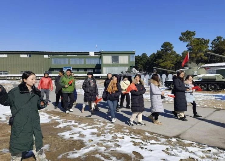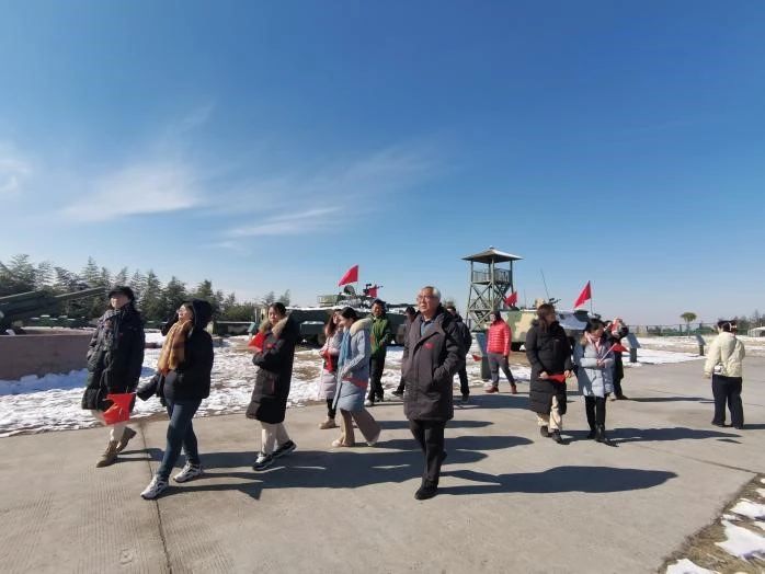 最后全體黨員來到兵器教育基地:參觀展示在雪地上的武器實(shí)物,坦克、飛機(jī)、發(fā)射炮等展示我國軍事實(shí)力日益增強(qiáng)。