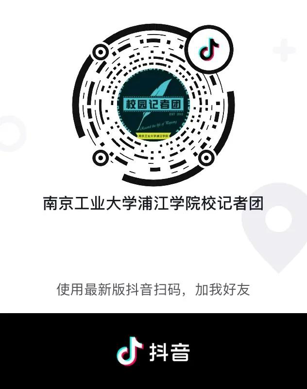 打開抖音掃描下方二維碼關(guān)注“南京工業(yè)大學(xué)浦江學(xué)院校記者團(tuán)”,點(diǎn)擊頭像即可。