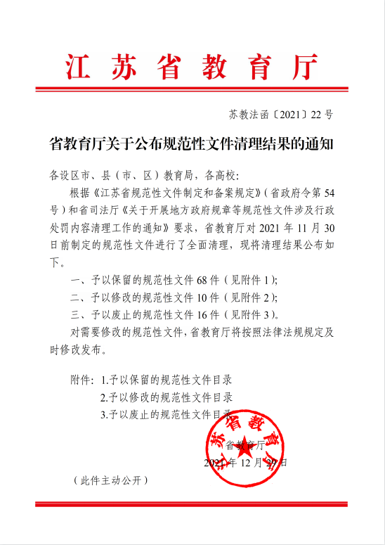 省教育廳關(guān)于公布規(guī)范性文件清理結(jié)果的通知